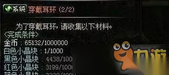 为了穿戴耳环,请收集以下材料。完成条件:金币1000000,白色小晶块、黑色小晶块、红色小晶块和蓝色小晶块各1000,精炼的时空石5个。穿戴耳环任务90级才能领取。
