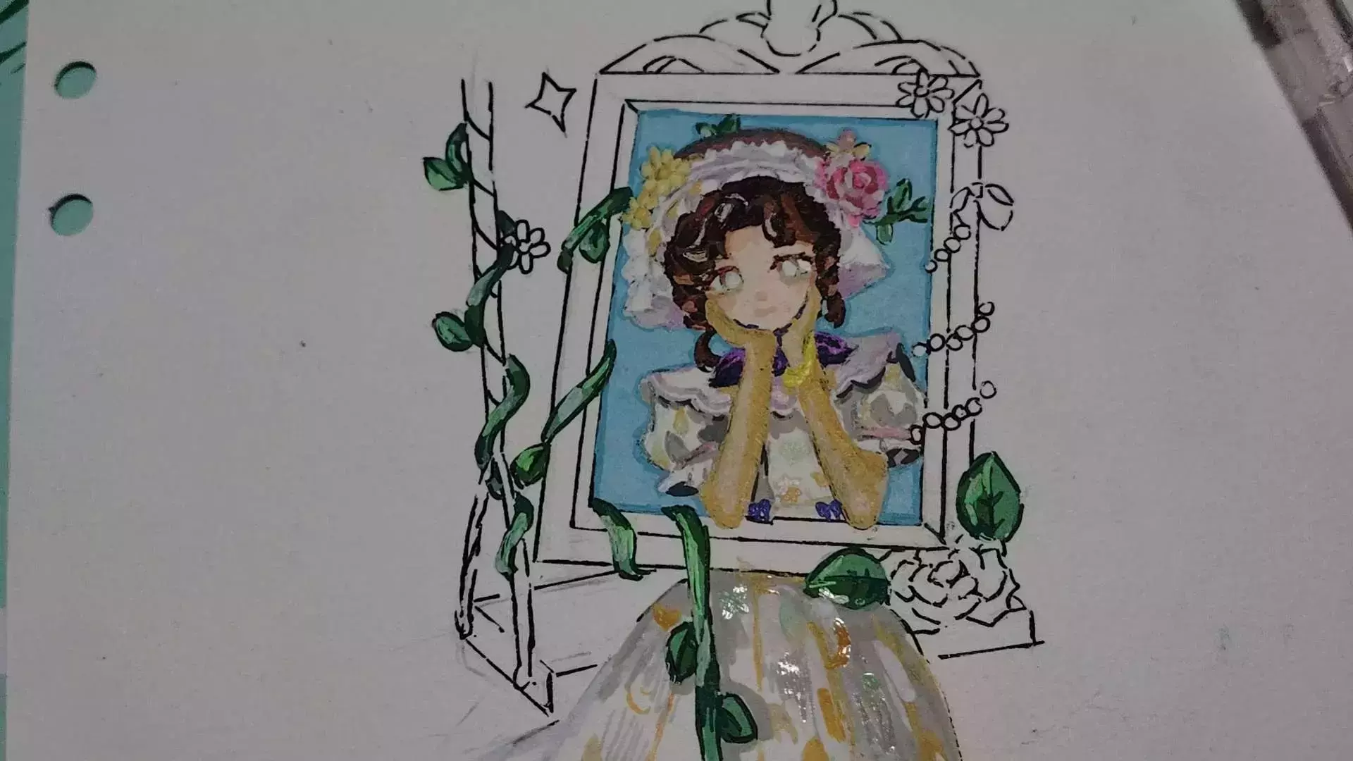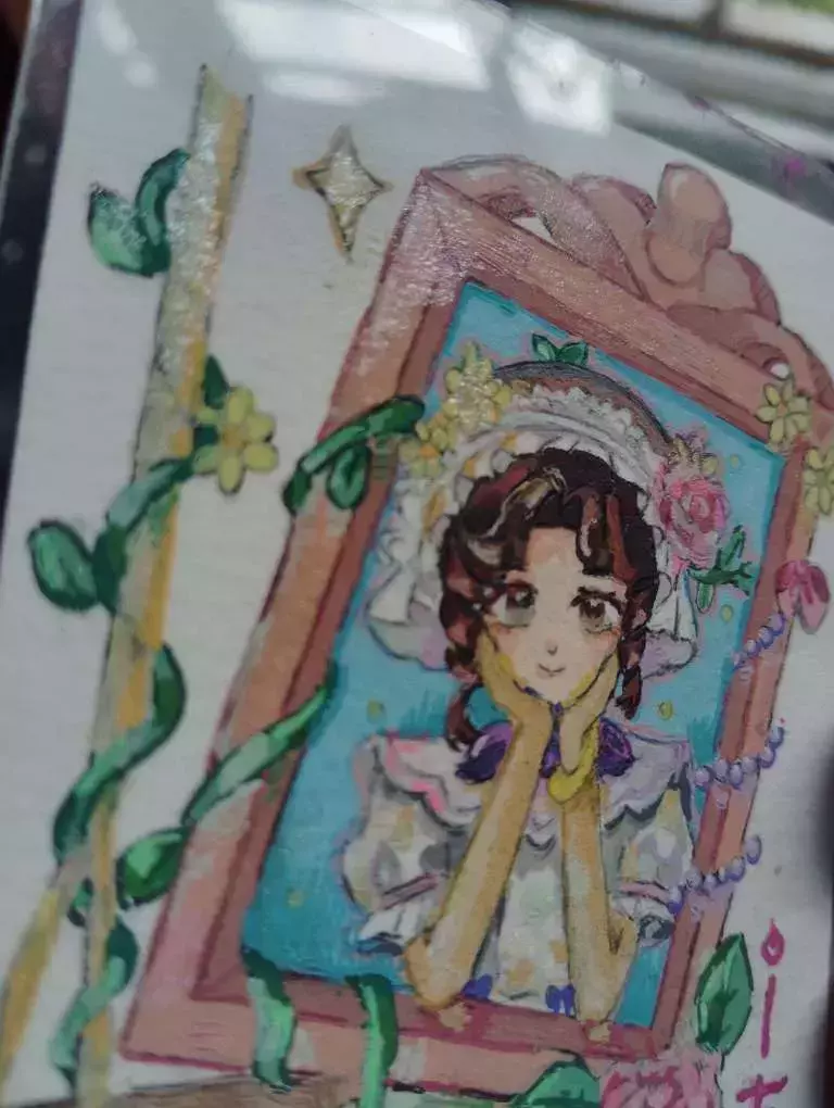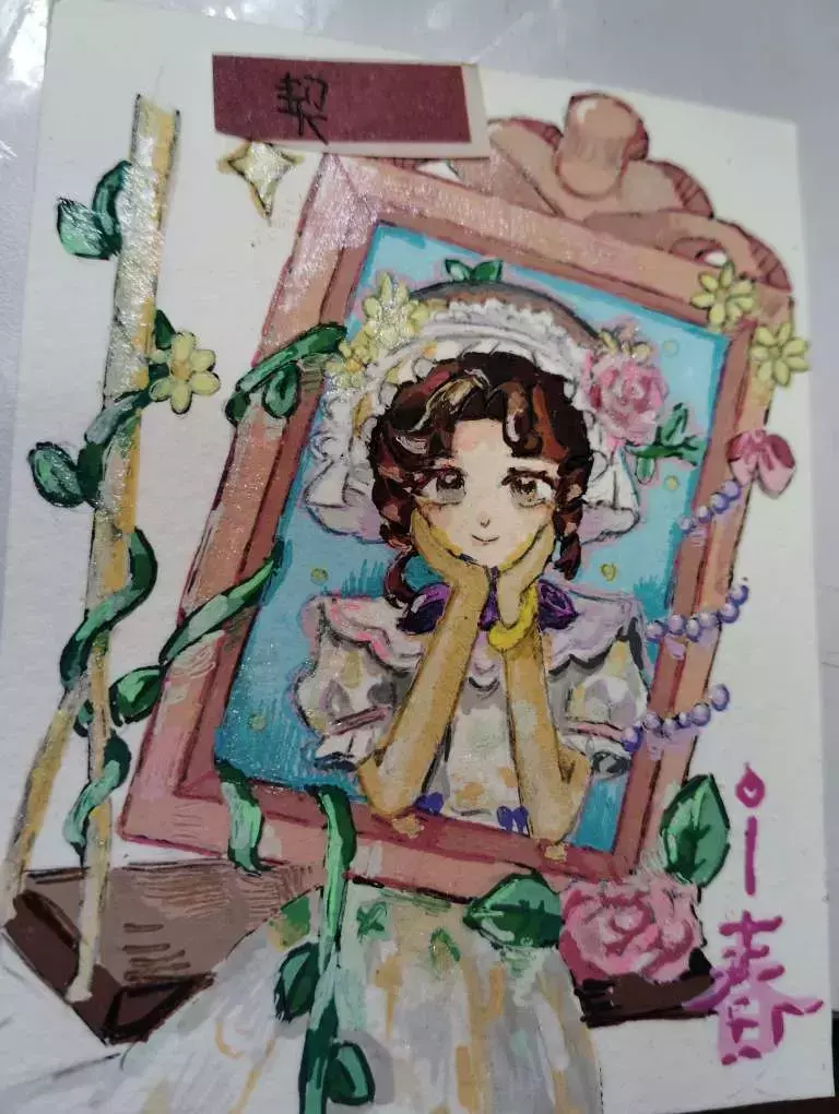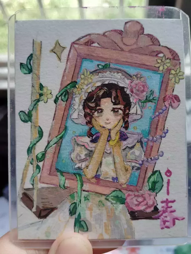 这幅差不多画了4个小时,感觉自己的画技又提升了,我把这部作品剪成小卡放进卡套里,因为整体画面很小,所以画起来也很费劲,我觉得最难处理的是她的头发,在没有线稿的情况下,想要画出层次非常难。