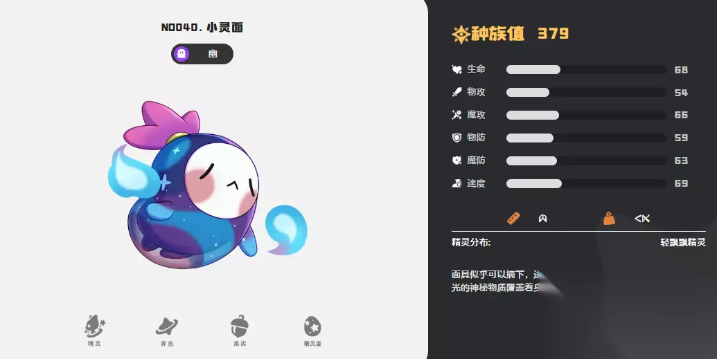 想要高效运用幽灵系精灵,首先需要理解它们的核心优势。这类精灵通常擅长干扰对手节奏,能够施加异常状态,并具备资源窃取或削弱敌方的能力。在成长过程中,部分幽灵系精灵还会获得第二属性,从而进一步提升技能组合的灵活性与克制面。其中,小灵菇是一个值得培养的基础精灵,它后续可进化为幻灵菇,转变为幽灵+草系的双属性形态。这种属性组合使其在技能搭配和属性相克方面更具应变能力,是早期过渡阶段的理想选择。