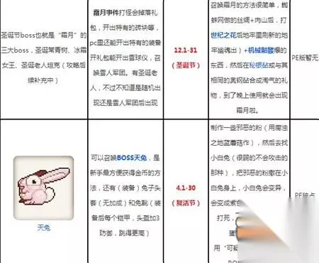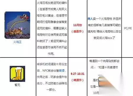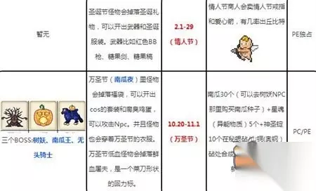 泰拉瑞亚手游中很多节日都是和我们现实生活中的节日挂钩的,今天就给大家做一个游戏中的节日汇总盘点。接下来和233乐园小编一起来看看吧! 情人节 2.1-2.29 圣帕特里克节3.5-3.31 复活节 4.1-4.30 啤酒节 9.27-10.31 万圣节 10.20-11.1 感恩节 11.1-11.30 圣诞节 12.1-12.31