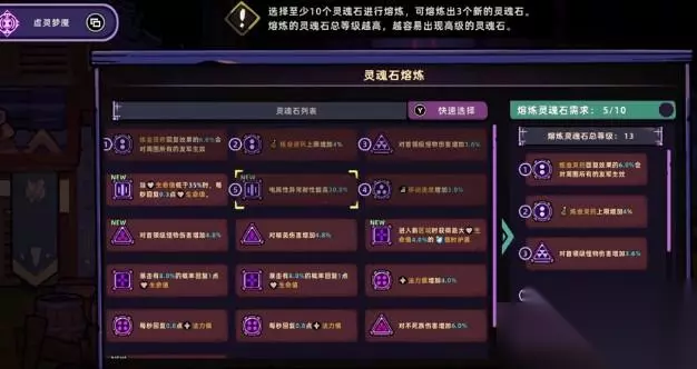 武器的方形槽主要是专门放防御类的灵魂石,目的是为了提升生存的能力,然后给输出提供保障。这里也给大家推荐通用并且实用的搭配,可以选择自愈或者是防护盾。自愈灵魂石对于新手而言就是一大福音,当角色血量比较低时,就可以触发每点一秒的持续回血效果。看上去好像并不高,但在紧张的战斗中,就可以靠着这微弱的回血一直撑到击败敌人,或者是找到补给道具,有效提升容错的几率。防护盾灵魂石在受到攻击时就有概率触发临时护盾,然后抵消一部分的伤害。
