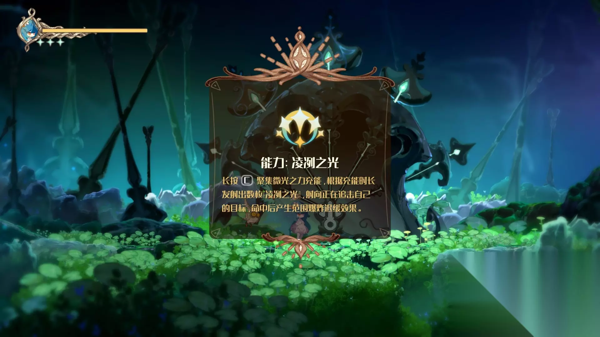 《微光之镜》凌冽之光攻略 可选)凌冽之光(能力) 目前的主线非必须。 前置物品:完美的钥匙 位置如图