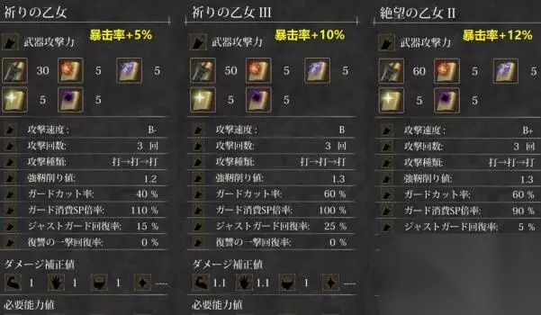 2、T1:祈祷少女和绝望少女 祈祷少女和绝望少女是适合大部分玩家的武器,每次攻击都会有四种属性的伤害非常强大,绝望少女攻击力略高,祈祷少女格挡成功后会回复血量。