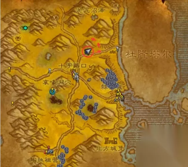 魔兽世界埃其亚基在哪里 注意事项: 走十字路口正上方再右转同样也可以到达埃其亚基的巢穴。 位置一览: 1、我们首先先来到十字路口,将方向调整为正北方。然后顺着大路向淤泥沼泽开始走。