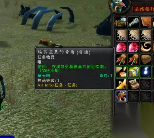 6、确认周围安全之后,打开背包,右键号角。