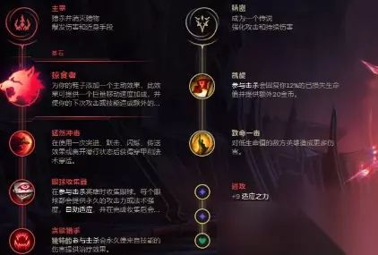 掠食者小天赋选择231,副系选择凯旋+致命一击 征服者小天赋选择213,副系选择灵光披风加水上行走,增加移速。 丛刃小天赋选择231,副系选择灵光披风加水上行走,同理。 一刀流剑魔出装 出无尽、岚切、狂风、电刀、收集者、多米尼克。 如果要出鞋子的话就放弃多米尼克。 玩法就简单说一下: 前期就当正常玩,出到岚切无尽,我们就藏在各种地方等人来,人一来我们开大冲过去就是一刀!不是敌死!就是我亡!