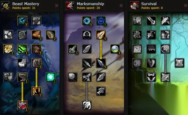 魔兽世界乌龟服猎人练级攻略: 一、练级天赋 1、10-19级天赋加点,强化雄鹰守护可以给玩家提供大量的输出,厚皮提升宠物的生存能力,而强化复活宠物则是让玩家在战斗中有更多机会可以顶着攻击把宠物给复活。 2、20-29级加点,狂怒释放天赋可以有效提升宠物的输出,同时也提升了它们的仇恨能力;寻路天赋能提升跑图的速度;野兽迅捷则可以让宠物更快地接触到敌人。 3、30-39级加点,胁迫不仅可以提供稳定的控制,并且还可以让玩家的的宠物瞬间制造海量仇恨;狂乱会进一步大幅提升宠物的伤害和仇恨制造能力。 4、40-49级加点,狂野怒火是一个非常强大的爆发技能,在PVP的表现中也还算不错。在点出狂野怒火以后就开始加点射击系的天赋,第一层如果一丁点PVP因素都不考虑的话,可以点“效率”而不是“强化震荡射击”,但强化震荡射击这个天赋是真的强,让人很难放弃。 5、50-60级加点,在“夺命射击”点满之后,接下来就应该直接学习“瞄准射击”,这是猎人最主要的输出技能,所以玩家应该在开怪阶段就直接用掉,让它早点进入CD,增加使用次数。鹰眼提供的射程在PVP中很好用,如果不想点鹰眼的话可以点“强化猎人印记”或者“效率”。