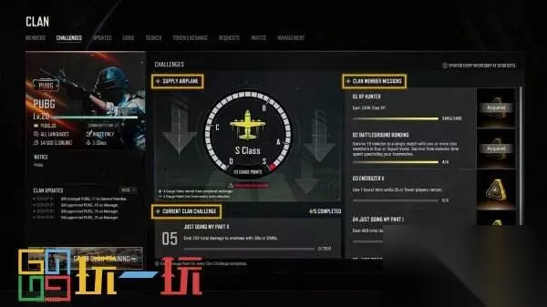 公会挑战: 与公会成员们一起进行的每周任务 完成挑战可获得公会补给飞机的计量槽点数。 系统每周会提供5个挑战,完成当前挑战后会开放下一项挑战。 公会挑战的目标值将由挑战开放时的公会人数决定。 当公会人数不满20人时,目标值会以20人为标准来制定。 公会补给飞机 公会补给飞机分为S、A、B、C、D级,等级由玩家通过每周公会挑战获得的计量槽点数来决定。 计量槽点数每周都会衰减,点数衰减量会随公会补给飞机的等级而变化。 计量槽点数和补给飞机等级会在北京时间每周三10:00后公会成员登录大厅时结算。 在规定结算时间点过后到实际进行结算之前的这段时间内进行的活动不会参与结算。 如果玩家在结算之前开始了一场比赛,并在其他公会成员完成结算之后才返回大厅的话,该场比赛中完成的公会成员任务不会被视为成功。 公会成员任务:各自进行的每周任务 完成该任务时,玩家会立刻获得新型奖励 – 公会物资箱。 获得的公会物资箱的等级会与公会补给飞机的等级相同。 系统每周会提供5个任务,在相关的公会挑战开放时任务也会一同开放。 公会物资箱 所有等级的公会物资箱中都有概率获得BP、积分币、道具图样和聚合物。 此外玩家还有概率额外获得更高一级的公会物资箱。 B级及以上级别的公会物资箱中有概率额外获得图纸和G-COIN。 公会物资箱可以在工坊中开启。 每周公会经验值目标
