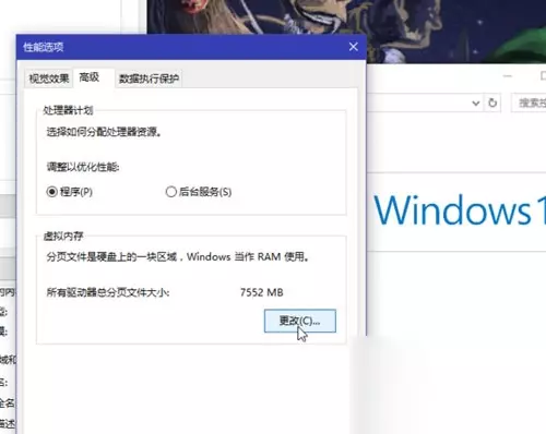 性能选项的高级中可以看见虚拟内存的设置了,点进去