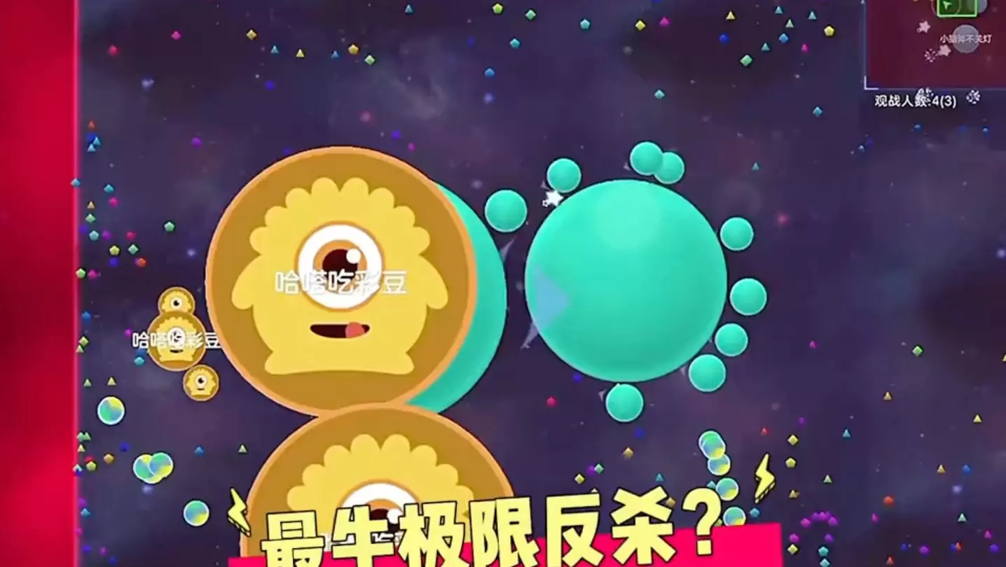 这是《球球大作战》的对战直播画面,展示了玩家“发狂迷”和“阿杰yyds熊”的对战过程,顶级指挥带来超强节奏感,还有小球极限反杀等精彩操作,战况紧张刺激。