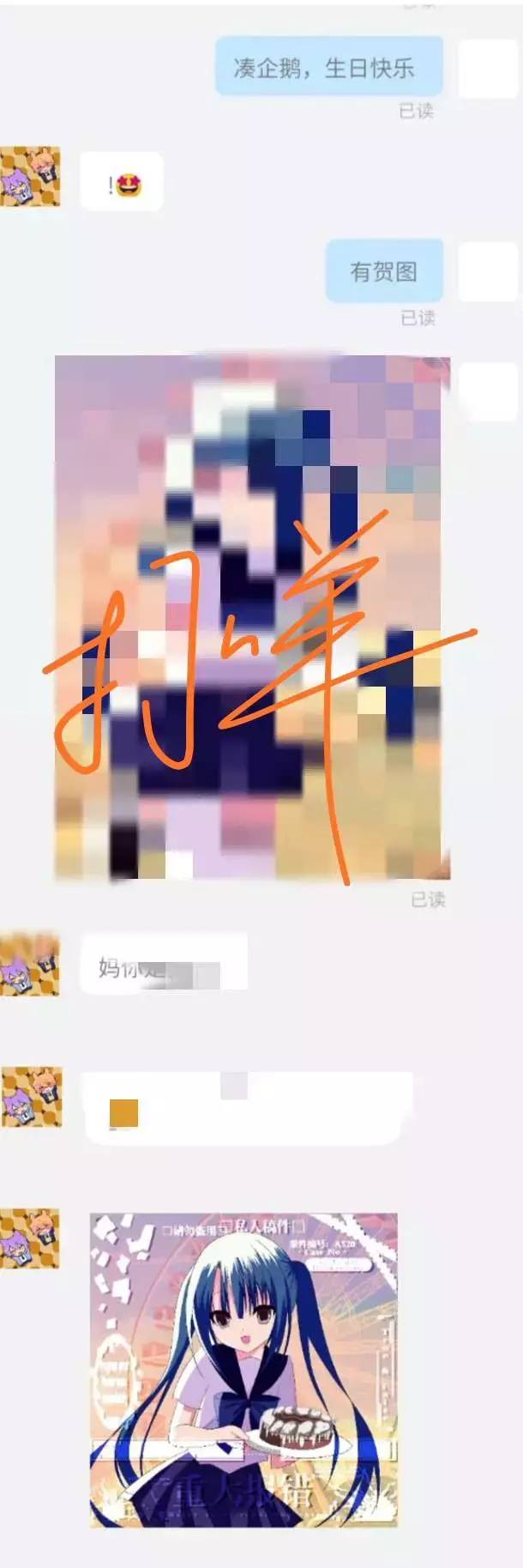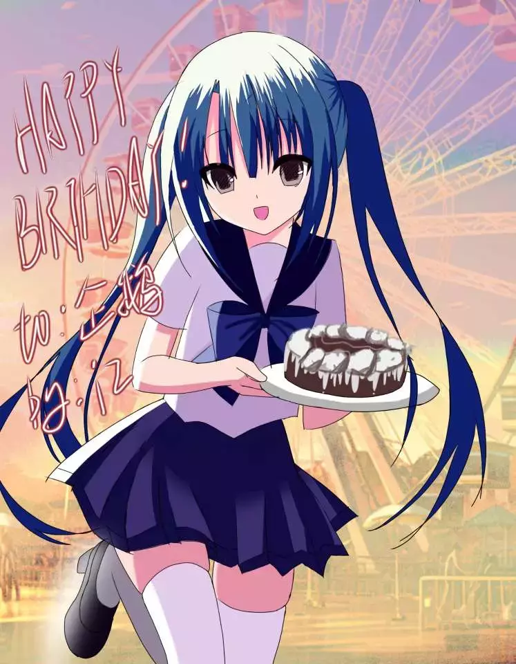给朋友画了生日贺图!发给她了很喜欢还帮忙给我打了个水印^^