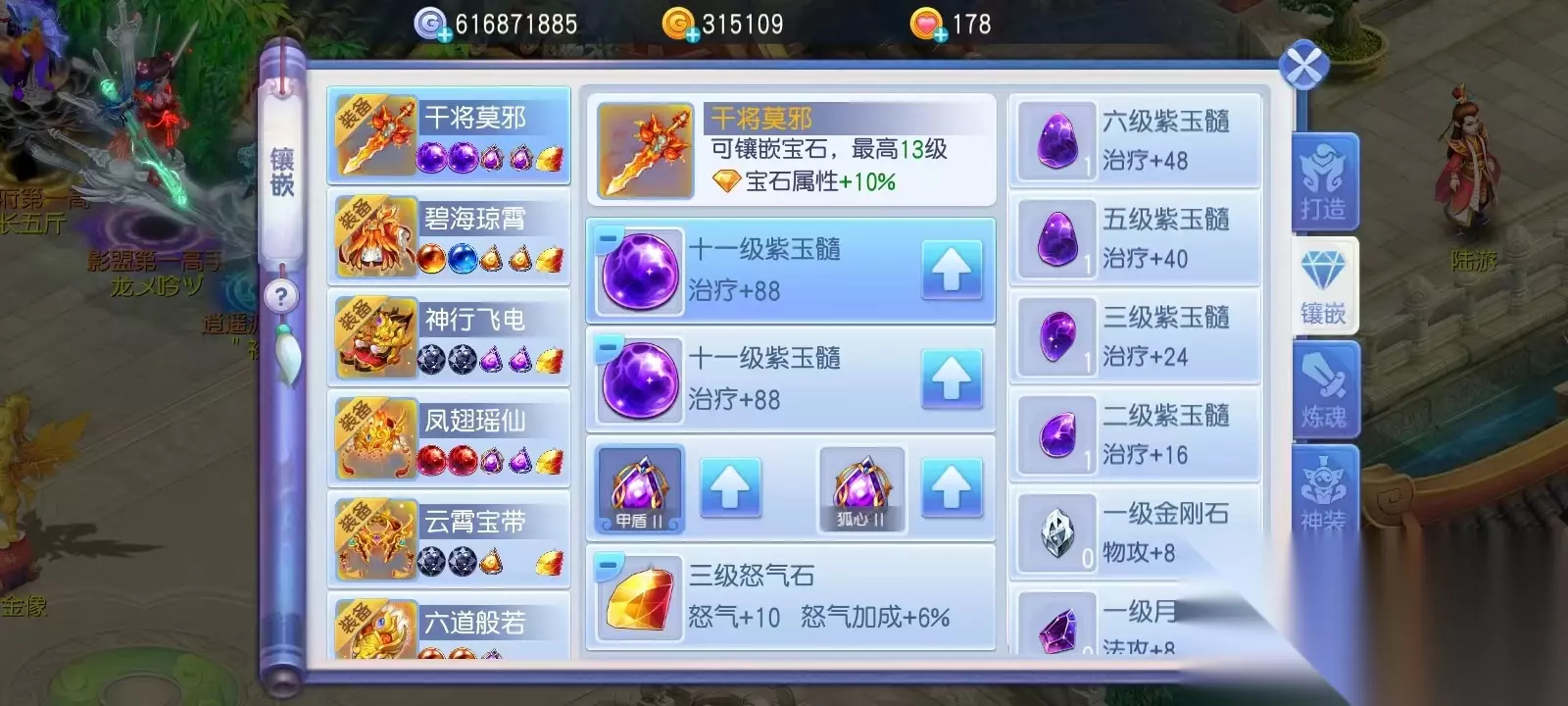 二、装备、宝石 ①60级之前的装备不用太在意。②55级要打凌烟阁,拿到宝石礼盒和三本装备紫书(两本60级装备紫书和一本60或70级装备自选)。③前期一定要存宝石,金子富裕的可以适当的多买点存起来,后期主流宝石会涨价。