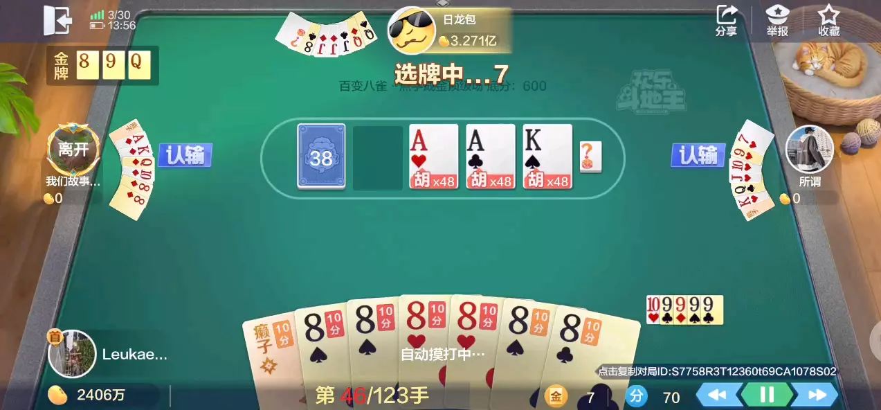 欢乐斗地主百变八雀牌顶级场再次出村,两家互卡,爽赢1.2亿欢乐豆。