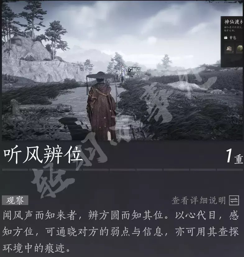 在推进任务和大世界探索中,按V使用「听风辨位」能够突出环境中的角色和可交互要素的轮廓,并突出引导。如果在一个场景中没有前进的头绪,记得使用「听风辨位」。可以看到NPC身上携带的物品,可以透视墙壁看到NPC位置等等