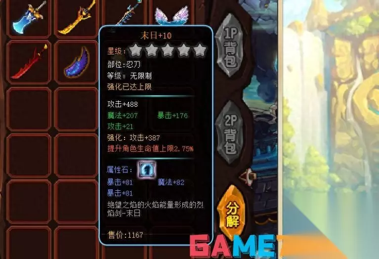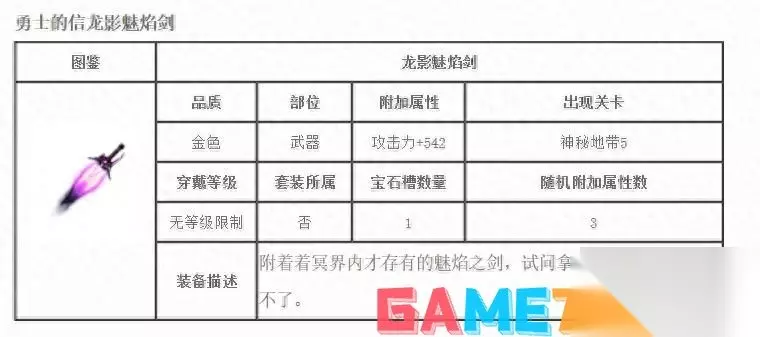 首先来看剑系的龙影魅焰剑,该武器的攻击加成还是很高的,足足加了542点攻击,要知道仅次于它的光之印记才加280的攻击。武器外观为流线型,剑身为火焰铸成,攻击时带有有焰尾,非常的好看。 而且特殊攻击有武器特效,并且平a的感觉很流畅,给人的感觉极好。美中不足的是,武器中间有个尖刺一样的东西,略微影响了一下美观。