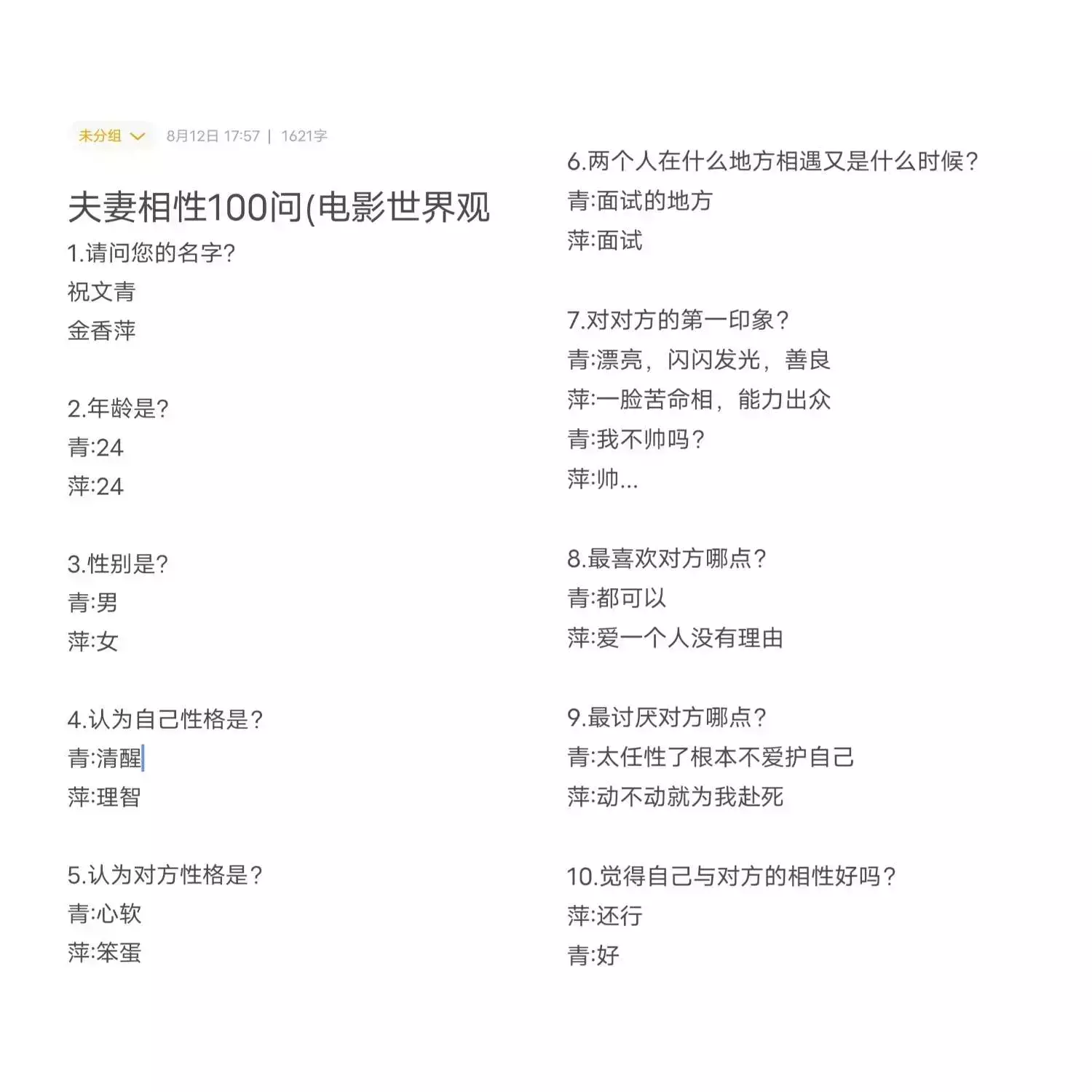 青柠醉香槟的夫妻100问吧!!٩(๛ ˘ ³˘)۶❤