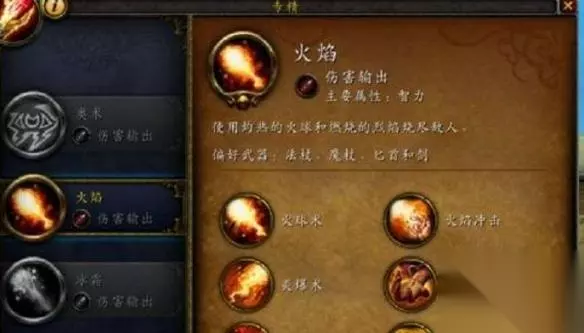 3、火法 三系法术中战略性最强的专精,输出逻辑自由,限制较少,技能联动性高。能够以直接伤害衔接持续伤害,技巧性很强。但技能操作量大,对手速和判断力有较高要求,对新手而言不太友好。