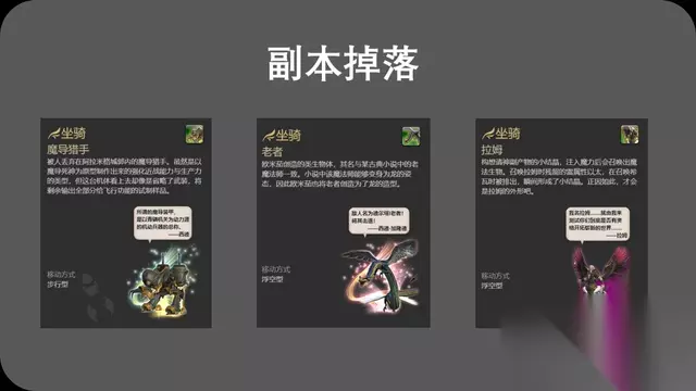 货币兑换 副本掉落 副本掉落就是指通过刷副本掉落奖励从而获得坐骑的一种方式。比如魔导猎手就可以在副本“鏖战红莲阿拉米格”中掉落获得;坐骑老者则是副本“欧米茄零式时空狭缝 德尔塔幻境4”中掉落获得;而坐骑拉姆则是副本“伊甸零式希望乐园 共鸣之章4”中掉落获得的。