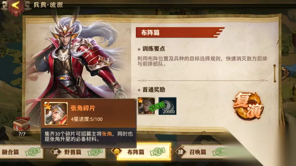 演武场是教大家如何更好理解游戏的地方,同时也会获取资源的好去处,不过部分兵典的难度是很高的,下面小编就来告诉大家布阵篇怎么打。