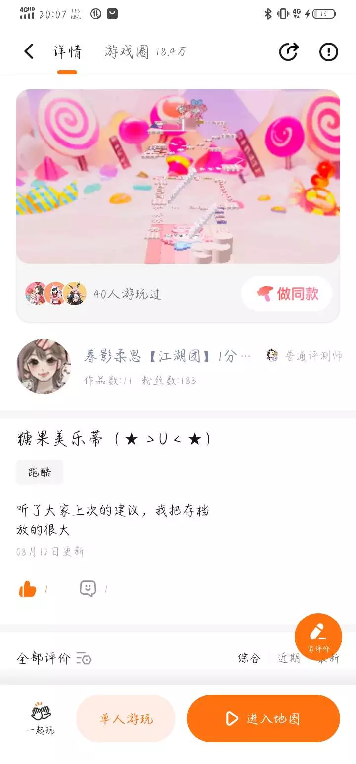 今天这位宝子的跑酷没有人玩,虽然很少人玩,请大家多多支持一下ヾ(✿゚▽゚)ノ