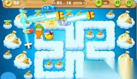 我们先用飞机和火箭来作为开局的塔防,这样就能不仅能让我们的小怪被击杀,还能给场景的障碍一个个清除,要记住清除障碍也能给我们增加很多萝卜币,最好是讲这些塔防放置在那些钱袋的旁边。之后在打倒第四波小怪的时候,我们就能清除里面的钱袋障碍了,钱袋清楚后我们能获得超多的萝卜币,这些萝卜币可以让我们购买很多塔防,多种一些攻击力强的塔防,将这些继续大面积攻击钱袋,等所有钱袋被清除,我们就能种很多塔防,最后完美通关了。