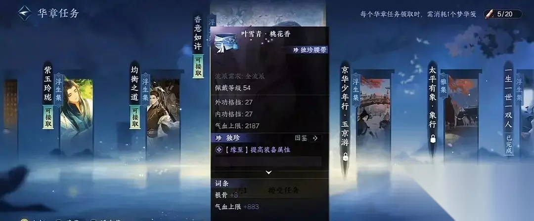 4、桃花香腰带(佩戴等级54) 点击任务栏选择华章任务,完成香意如许任务即可获得。