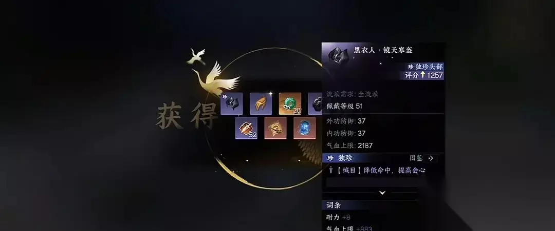 2、镜天寒盔(佩戴等级51) 雁门关坐标395.852。等到天黑拔剑,然后击败黑衣人即可获得。