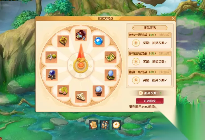 比武大会的奖励也有所修改,参与追逐战的玩家可以获得“演武任务”,完成对应任务可以解锁大转盘抽取机会。就目前的情报来看,抽奖机会最多有三次机会,获取方式分别为参与一场对战、参与三次对战、赢得一场对战。
