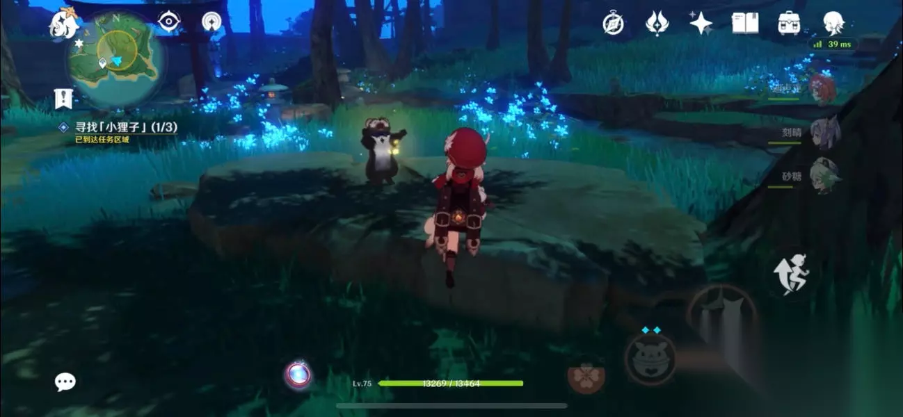 第二只回到路上,会发现一只唱跳狸子,跟紧它沿着路往下跑,大致闪现位置如下图: 1.发现