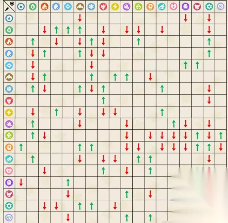 单属性克制规律: 火系克制草、冰、虫、机械四类属性,对草系造成2倍伤害,对冰系造成2倍伤害,对虫系与机械系同为2倍;水系克制火、岩、土、机械,其中对火系为2倍,对岩/土/机械均为2倍;草系克制水、岩、土、地面,对水系为2倍,对岩/土/地面均为2倍;冰系克制草、龙、地面、翼,对草系为2倍,对龙/地面/翼均为2倍;幽系与光系构成互克关系,双方互相造成2倍伤害;恶系克制幽、心理,被幽系抵抗(×0.5);龙系被龙、冰、妖精克制,其中冰系对其造成2倍伤害。