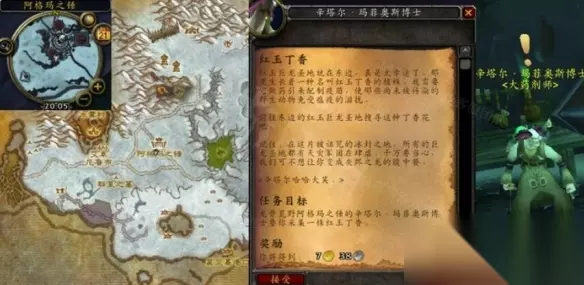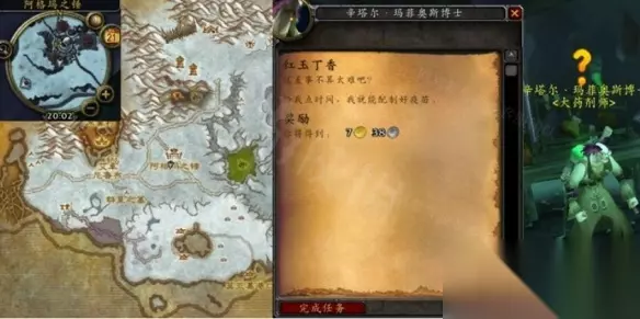 红玉丁香获取方法介绍 红玉丁香获取方法: 接取等级:71 接取NPC:辛塔尔·玛菲奥斯t博士(龙骨荒野,阿格玛之锤) 完成NPC:辛塔尔·玛菲奥斯博士(龙骨荒野,阿格玛之锤) 奖励声望:250点战歌远征军 任务开始: