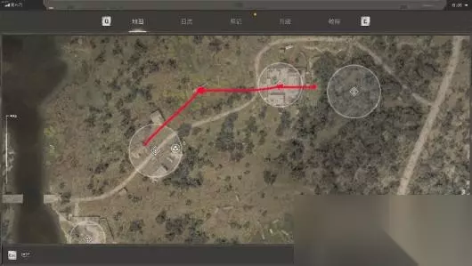 接下来可以顺着废弃村庄一直向前走,可以看到一个碉堡,赫尔曼叫我们进去找涅戈达博士。下图白色圈圈处就是入口的位置,正中间的医疗箱,可以用枪械或者小刀打开,里面有绷带或者医疗包。