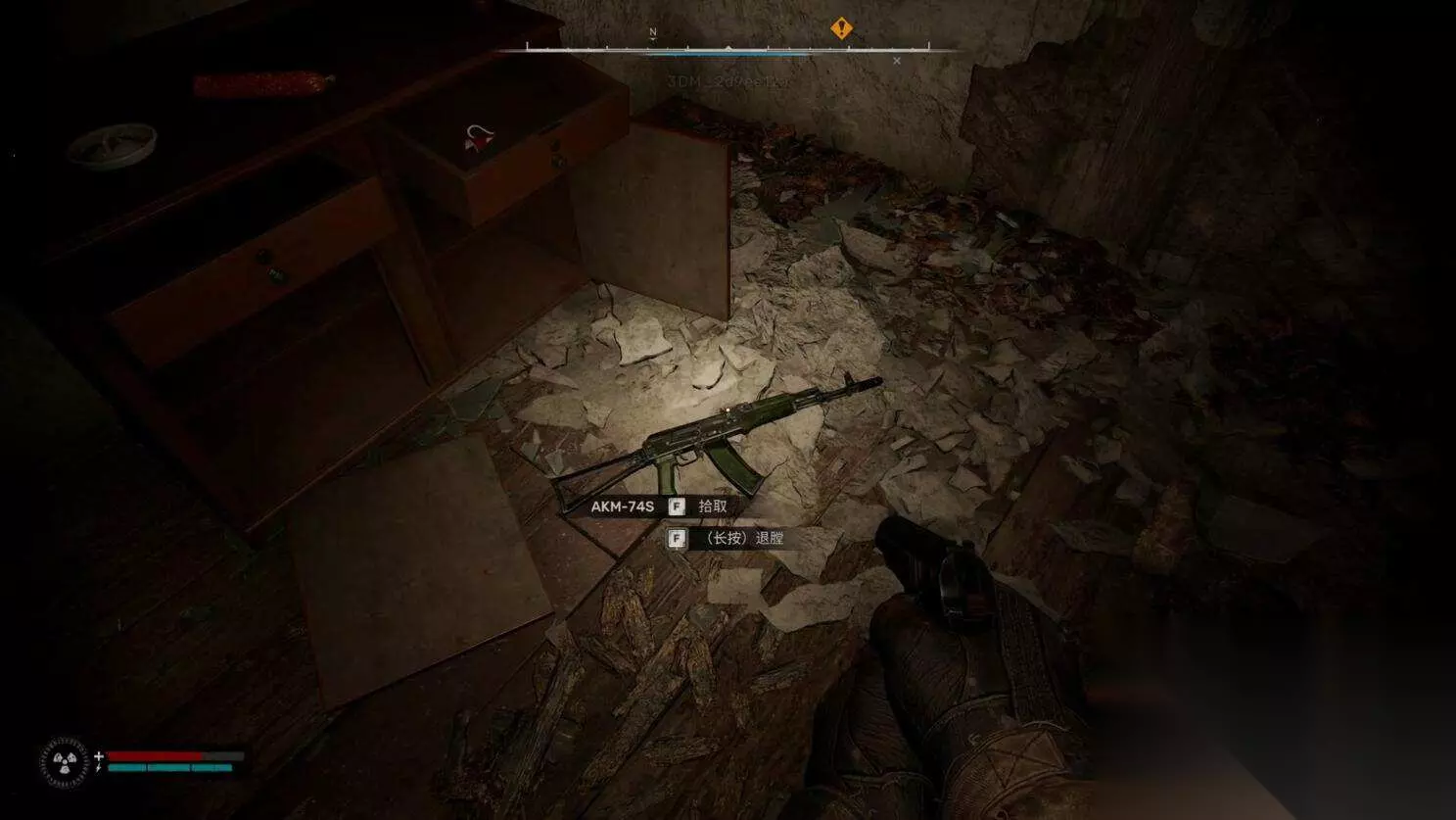 在左边的第一个房间,里面会有一个死去的士兵,他旁边有一把比现在手里的AKM更厉害的AKM-74S,可一定不要忘了。