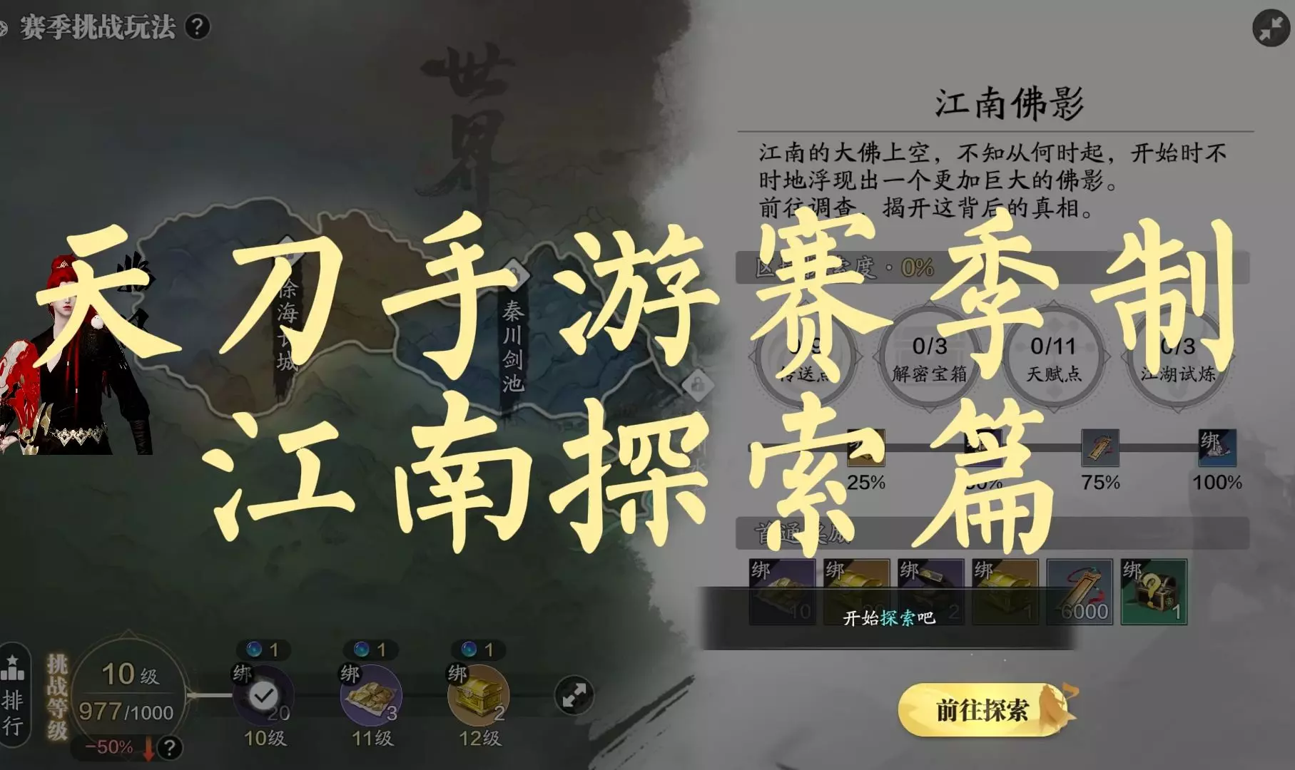 天涯明月刀手游大世界探索不要慌!“江南佛影”最全攻略指南!如下: 各位少侠大家好,我们又见面啦!江南佛影作为赛季挑战玩法的第一关,相信很多少侠进去之后都一头雾水,我应该先干什么?如何拿到首通奖励以及收集奖励?别急,别急,下面把收集到的点位全部都列出来。