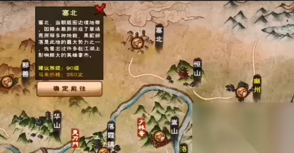 这张新地图并不是从幽州进去的而是从恒山进去的。 具体的坐标在恒山的(0.21)处,偏西边,具体位置看下图。在靠近边缘的位置,进去就是塞北了。 地图特色: 塞北的绣庄可以购买以及缝纫90级和90级的装备。 商店: 塞北缝纫 【90级装备及图纸】:吉达护腰*5、乌斯护腕*5、呼如木甲*5、苏布宝戒*5、其木格坠*5; 【饰品】:虎溪冠*1 【材料】:乌缕*5 资源: 宝箱 (12.24)处震碎巨石获得 资源点 (9,21)乌缕,守点怪85级 树桩 (7,28) (24,27) (22,16) (12,21) 以上就是小编整理的关于《烟雨江湖》塞北地图宝箱位置介绍的相关内容,想了解更多的相关资讯与攻略请关注233乐园手游网。