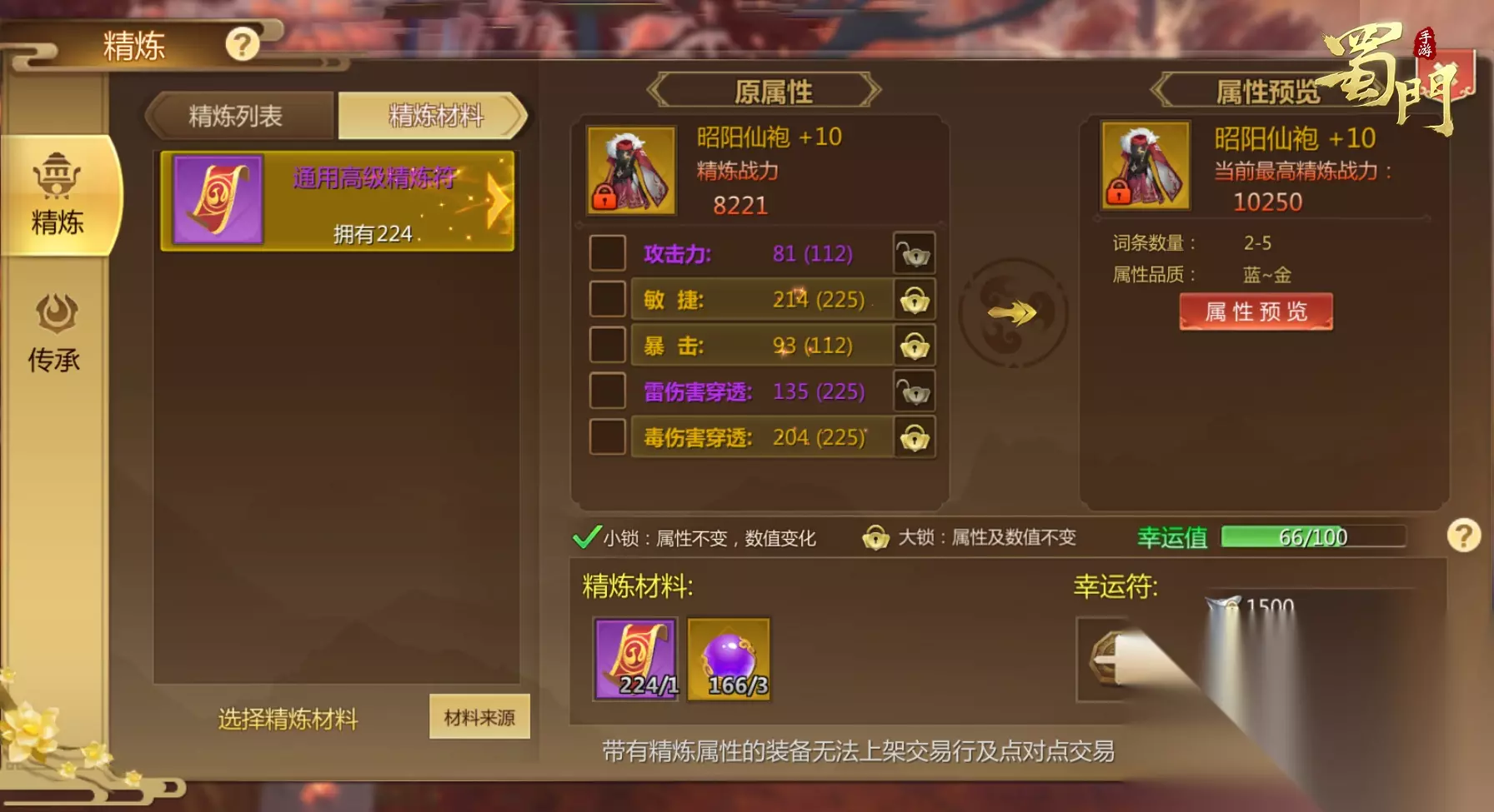 配备属性 青丘暴击决议输入!以是配备属性里暴击是最紧张的!再加上自带的暴击加成技艺!能输入极高损伤!以是护腕护手护膝鞋子属性选敏暴!衣服腰带选敏体!假如想要更强的活着才能!护膝和鞋子可选敏体! 主宝贝:灵敏体质>单灵敏 副宝贝:高敏低体>低敏高体 护腕&护手&护膝&鞋子:灵敏暴击>灵敏体质 衣服&腰带:灵敏体质>灵敏暴击 戒指:暴击>致命 护符:全属性