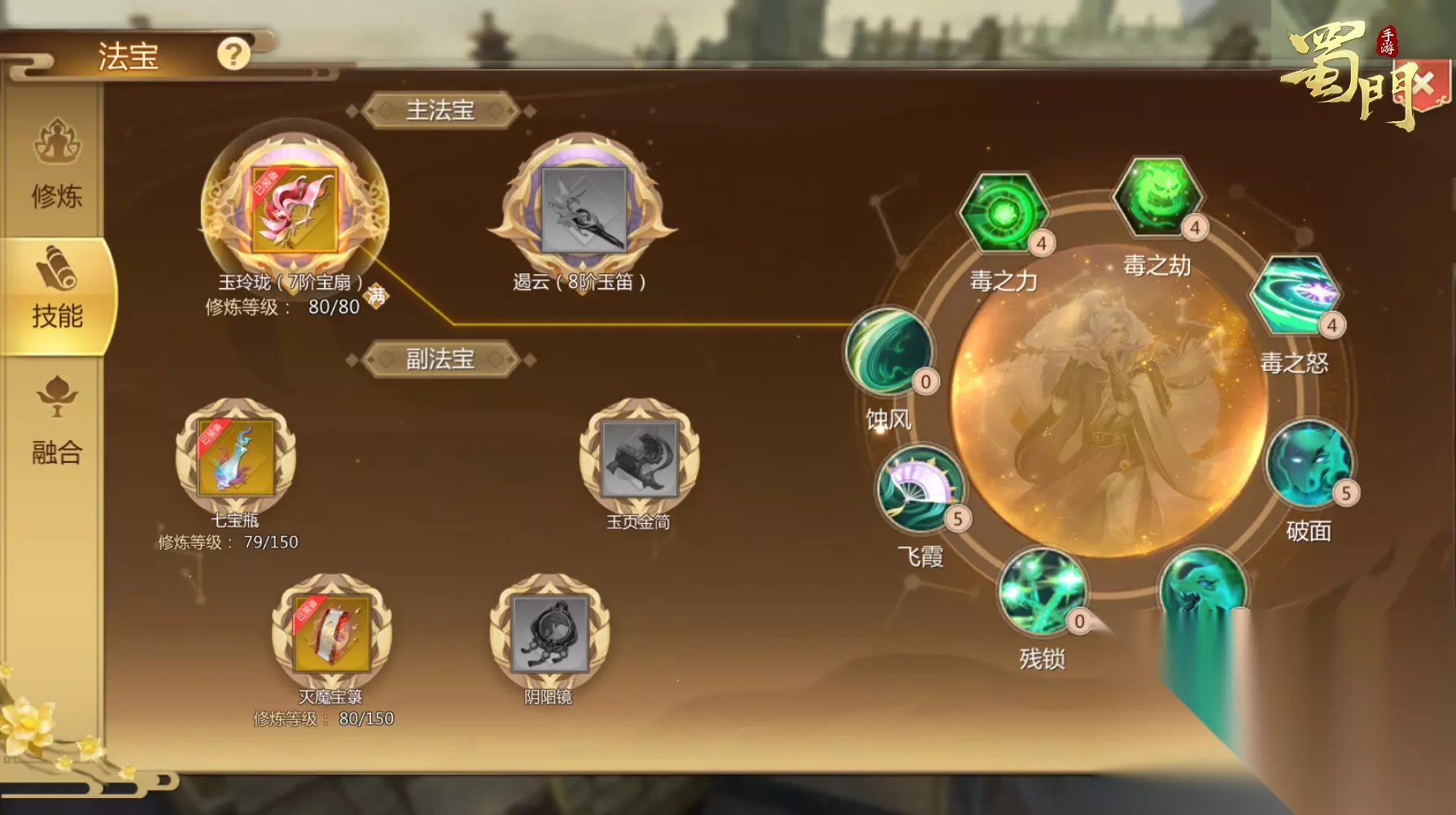 技艺加点 宝扇:优先点满破面!其次飞霞减防!在点毒之力、毒之劫、毒之怒!提拔毒系损伤! 玉笛:优先点满灵狐变!其次破音!玉鸣、穿石!雷之力、雷之劫、雷之怒技艺!可以进步青丘损伤及暴击率!