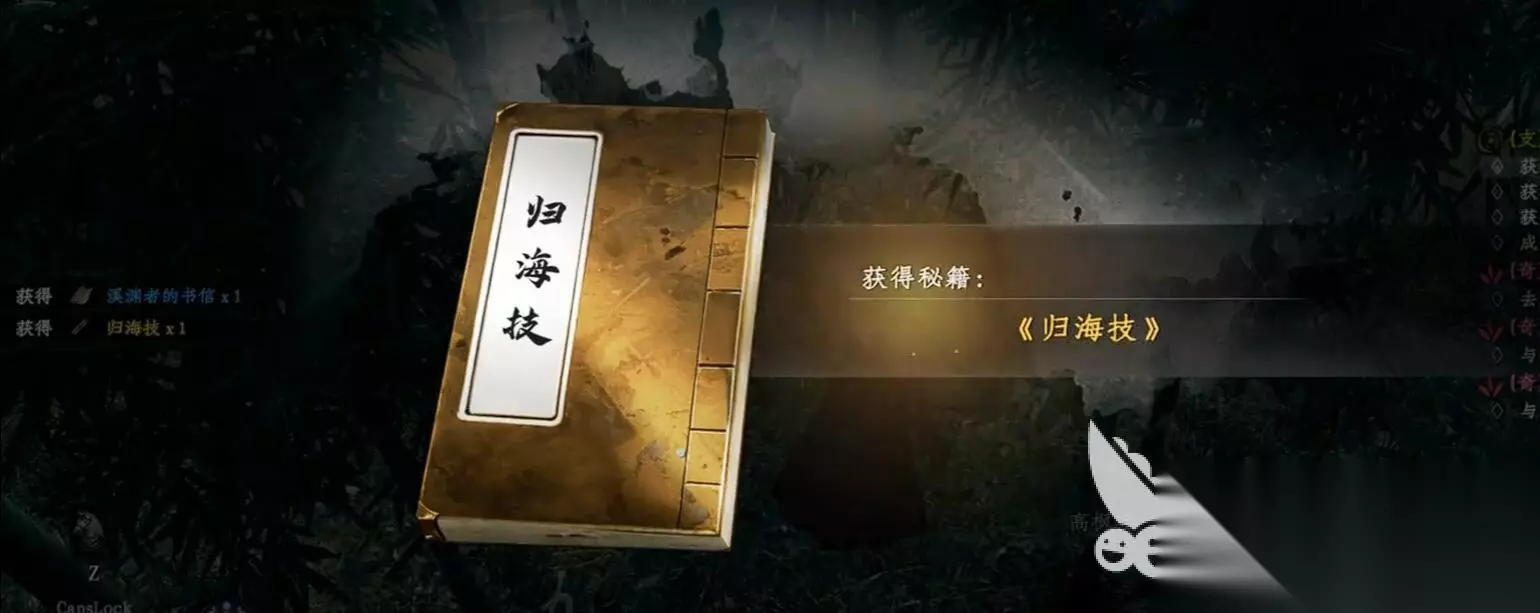 解密完成后,系统会提示你前往百合谷,并提供了具体坐标。抵达百合谷后,找到原本无法交互的石碑,现在可以选择放入令牌。放入令牌后,山洞门会开启。洞内有多个宝箱可供探索,进入后向左行进,墙上绘有天下霸剑的技能图示,部分宝箱中也藏有该技能书。 清理山洞内的怪物,沿途会遭遇两名小怪和一头熊,击败熊可获得一本金色秘籍。继续前进至一扇铁门前,与右侧火把互动即可开启。建议实力不足的玩家提前存档。最终击败洞内的首领后会掉落渊者之血和天下霸剑秘籍。完成任务后离开山洞时,会收到一封飞鸽传书,标志任务圆满完成。