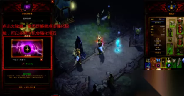 4、出版副本后,再次点击奈非天方尖塔,即可进入大秘然后玩家选择大秘密。如果有足够的金币,选择加强大秘密,以便通关后有两次机会加强宝石,如下图所示。