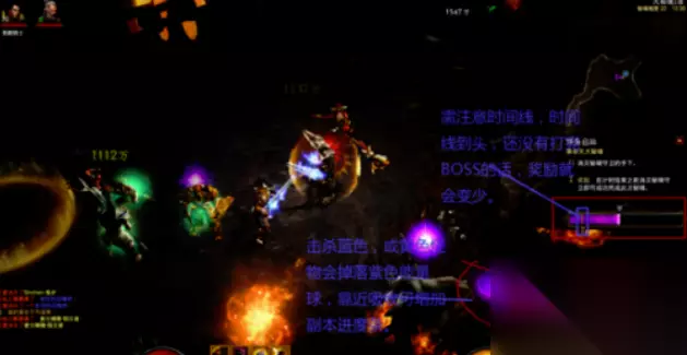 5、在大秘密副本中,小怪物不会掉下装备,但玩蓝色和黄色的小怪物会掉下紫色的球。靠近后,它会自动吸收,这可以增加副本的进度。在时间进度满之前,您可以获得奖励,如下图所示。