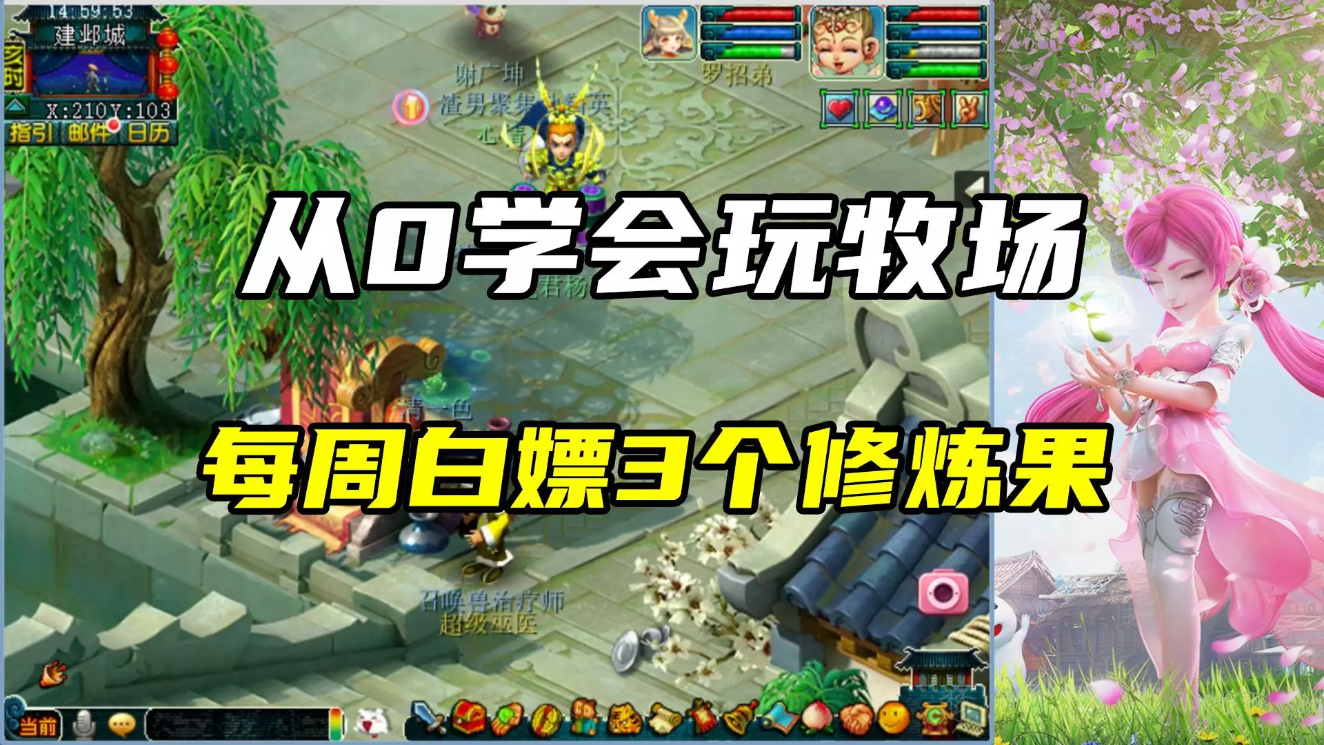 这是《梦幻西游》从零开始搭建牧场的第1天内容,展示了领取牧场任务、与NPC交互、准备购买宝宝窝等从零起步搭建牧场的相关操作,带你一步步了解从零到高级牧场的初始流程。