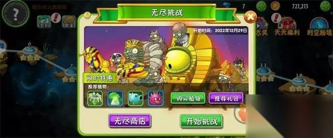 无尽模式会在每周四的中午十二点准时开放,到了周日晚上的二十四点则会结束。每周都会以埃及、海盗、西部、未来、摇滚、恐龙等世界地图的顺序更换一次。该模式里的植物数量是有限制的,不能够携带上向日葵,天空里也不会掉任何的阳光。在初始轮次里所有的植物都有固定的储备量,每通过一个轮次,系统会随机选择一个植物进行补给。还会给玩家补充阳光,上限是两万,想要获得更多的阳光,就只能去搭建黄金地板、蓓蕾或者金蟾蜍等。