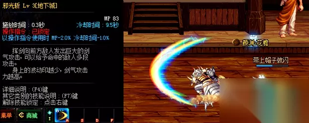 邪光斩,阿修罗的技能。挥剑向前方敌人发出剑气攻击,可以给予命中敌人多段攻击,这个技能可以考虑在决斗场中学习一点,浮空敌人后马上施放邪光斩,然后再进行连击。