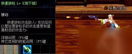 快速拔枪,男女漫游的技能。在技能改版后变为被动技能,学习后增加普通攻击的拔枪速度,攻击速度和攻击力,如果你喜欢普通攻击的话,决斗场中务必学满该技能。 格斗家