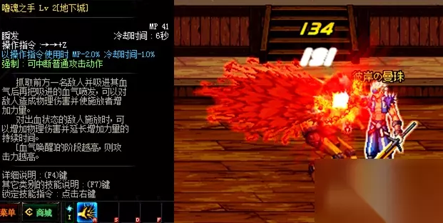 嗜魂之手,狂战士的技能。抓取前方一名敌人并吸其血气后再把吸进的血气喷发。该技能在决斗场中可考虑学习一点,多数是剑魂学习该技能来进行花式连招。 神枪手