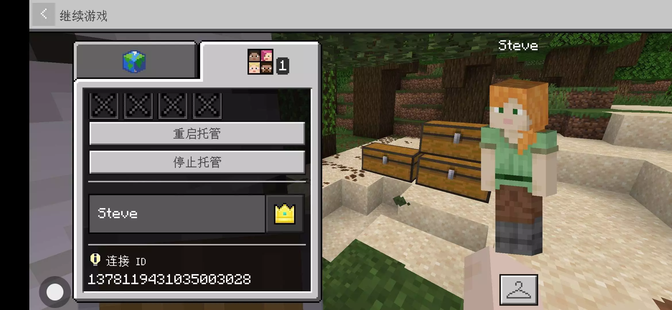 我们在托管的世界中保存并退出之后,这个ID就会被重置随机成另一串数字。
