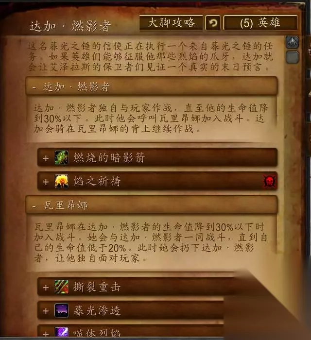 达加·燃影者 这名暮光之锤的信使正在执行一个来自暮光之锤的任务:如果英雄们能够征服他那些烈焰的爪牙,达加就会让艾泽拉斯的保卫者们见证一个真实的末曰预言。
