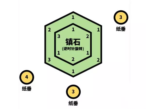 【原神清籁逐雷记任务攻略汇总】 原神清籁逐雷记其三任务完成攻略 一、任务介绍:来到清籁岛后,你遇见了两位冒险家,他们似乎正在研究-种叫做「镇石」的东西。但跟随着猫的足迹,你来到了--座破败的神社,里面有一-只自称「浅濑神社代宫司」,名叫「寝子」的猫。在帮助「寝子」修好了神社中的「[塞钱箱」以后,它将封印「镇石」的方法告诉了你。而且,如果能将这座清籁岛上的四座「镇石」全部封印的话,说不定就能平息清籁岛上的雷暴,【简单的说就是玩家需要跑平息清籁岛上的雷暴】。 二、触发条件:玩家完成【稻妻·稻妻城】清籁逐雷记第二个任务后自动开启。 三、任务奖励:冒险阅历*300+原石*40+大英雄的经验书*4。 四、任务流程: 1、玩家来到任务有雷暴的【镇石】。 2、玩家寻找前往目的地的方法。 3、穿过第二个任务中第3个纸垂旁边的【相位之门】,此时玩家会到达天上。 4、接着玩家寻找着【传送锚点】的方向飞到镇石旁边。 5、玩家根据任务提示系统方向触碰纸垂就可以了。 6、最后还是【封印镇石】。 五、快速解法: 1、方法:镇石上层转3下,下层5下。 2、如不小心弄坏镇石的原始状态,玩家可按下图进行调整。 3、中间的六边形是上层的镇石,外边的是下面的镇石。 4、公式为:镇石上层【纸垂】数+镇石下层【纸垂】数=【御币】上的纸垂数。
