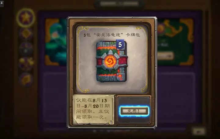 “迎新合集”补偿的5个“安戈洛龟途”卡牌包现已经送达~ 小伙伴们可以登录《炉石传说》,打开游戏内商店,找到【5包“安戈洛龟途”卡牌包】,然后点击下方的【免费!】按钮,便可领取到补偿的卡牌包! 注意!注意!领取截止时间为2025年8月20日23:59,快提醒你的朋友们上线领取吧~ 若卡包没有到账,可以尝试重新登录游戏哦~