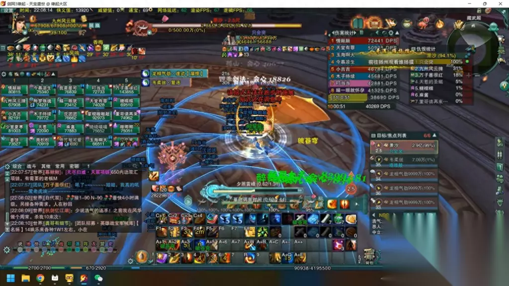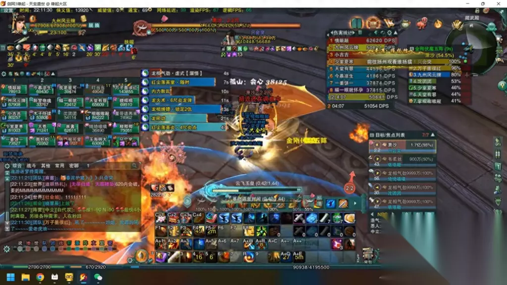 这里其实最该做的,刚才我也是没进头了,要么是往后拉位置,要么是交一个盾,这样就是有极大概率是能活下来,这边起来以后底牌子也是掉了不少,正好赶上boss 的出笼,我扶摇加合规回到战场,继续输出。